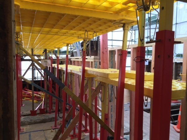 - Decking had to be installed around the propping towers and the acrow props for the tilt slab panels